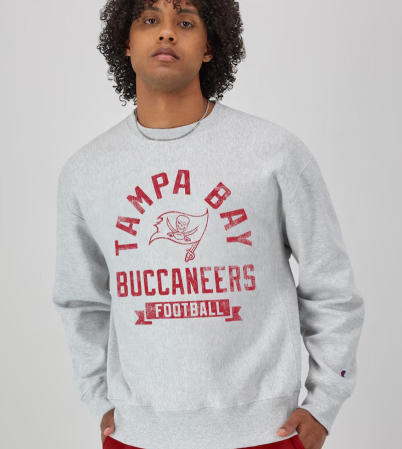 Tampa Bay Buccaneers Champion Reverse Weave Fleece Pullover Sweatshirt - Heather Gray